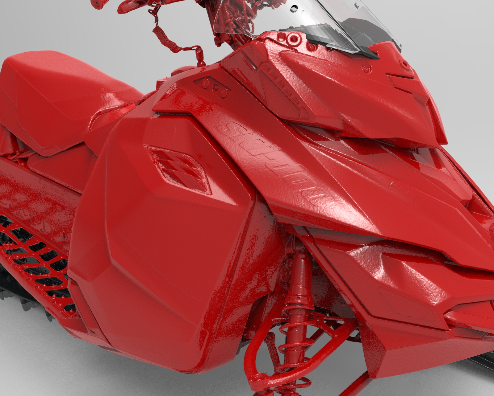 Concept rendering of a snowmobile in keyshot. Highlighted to give a better visual of its design, and engineering.